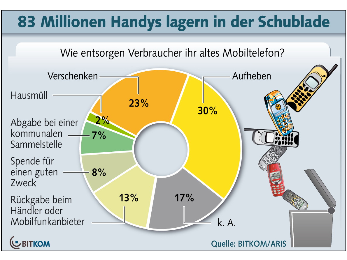 Die große Zahl erklärt sich auch dadurch, dass viele Geräte schnell ersetzt werden: Neue Geräte locken mit besserer Leistung und sind wegen der in Deutschland üblichen Mobilfunkverträge
